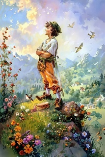 Представьте себя на месте Кота в сапогах, стоящего перед замком. Какие цели вы бы хотели достичь и какие навыки вам помогут в этом? Какие смелые решения вы готовы принять? Запишите свои мысли и чувства, и подумайте, как вы можете применить этот опыт в своей реальной жизни. Эта карта напоминает о важности находчивости, смелости и целеустремленности, которые помогают достигать успеха и преодолевать препятствия на пути к своим мечтам.