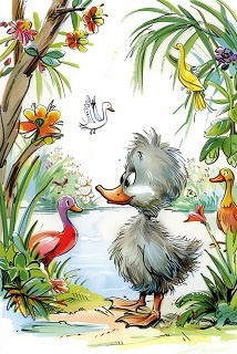 Представьте, что вы – Гадкий утёнок, стоящий у пруда. Какие чувства и мысли у вас возникают, когда другие смотрят на вас с насмешкой? Что помогает вам сохранять веру в себя и двигаться вперёд, несмотря на трудности? Запишите свои размышления и подумайте, как этот образ можно применить в вашей реальной жизни.