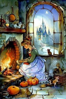 Представьте себя на месте Золушки, сидящей у камина. Какие чувства и мысли у вас возникают, когда вы смотрите на замок вдалеке? Что помогает вам сохранять веру в лучшее будущее, несмотря на текущие трудности? Запишите свои размышления и подумайте, как этот образ можно применить в вашей реальной жизни.